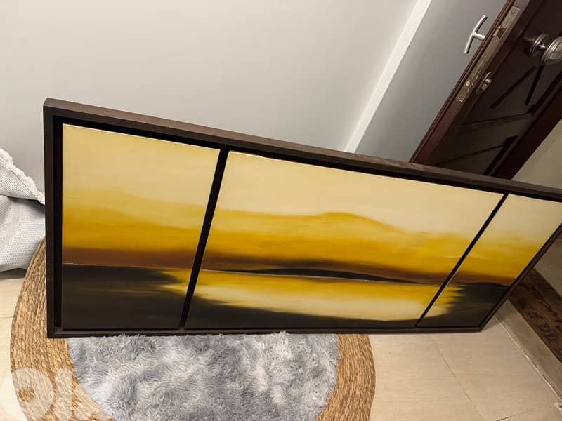 a 3 in 1 piece woodframe. warm colours 170 cm x 72 cm