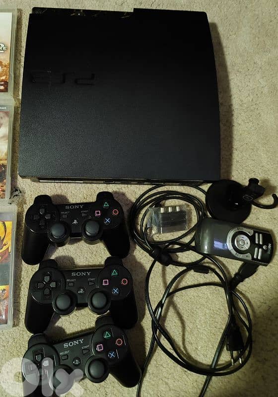 بلاي ستيشن 3سليم بحاله الوكاله اورجينال مع ثلاث مسكات و٩ سيديات تبديل علىps4 مع دفع فرق