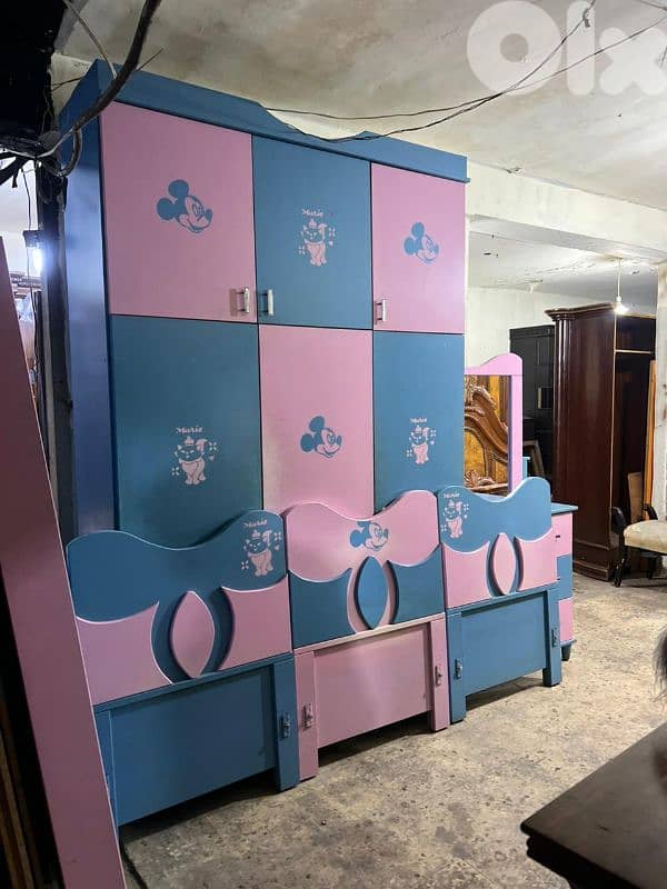 اوضة نوم ولادي مستعملة بحالة ممتازة مؤلفة من خزانة طابقين ثلاث درف من فوق وثلاث درف من تحت مع تخوت مفرد عدد 3 واحد منن الو جارور من تحت شفنيرة مع مرايا مع شفنيرة زيادة كتير مرتبة وحلوة السعر الأساسي 2200$ مطلوب فيها 700$ وبتزبط السعر للتواصل