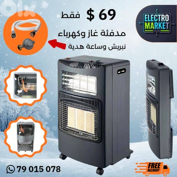 دفاية غاز وكهرباء بسعر 69$ فقط توصيل ضمن بيروت مجاتي نبريش وساعة هدية جودة ممتازة يوجد ضمان للتواصل 79015078.