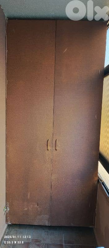 خزانة خشب قياس ١٢٠*٢٩٠سنتم سماكة ٣ سنتم حمولة الرف ٢٥٠ كلغ من دون ضهر تثبت على الحائط تصلح لغرفة مونة أو عدة كاراج أو بلكون المطبخ. مفكوكة جاهزة للنقل مع براغيها و الزوايا موجودة بوادي شحرور السفلى الطابق الأول.