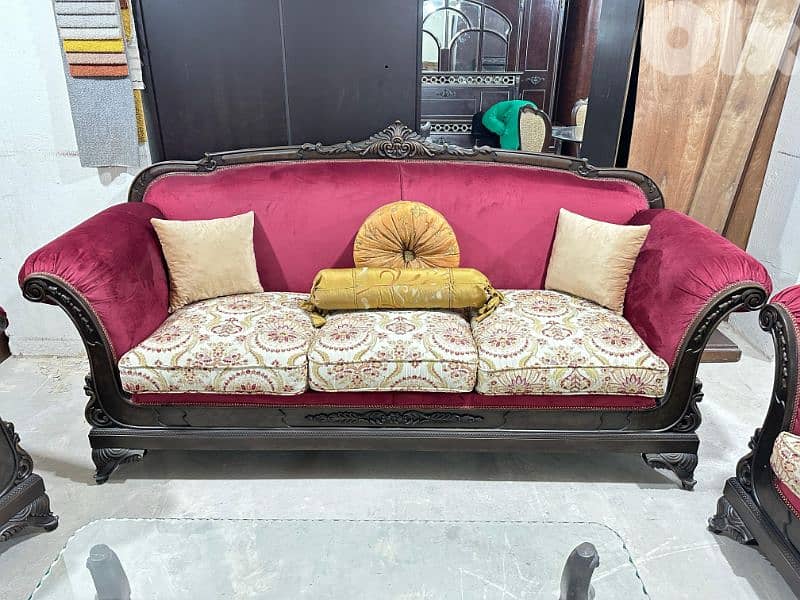 طقم كنبايات حفر خشب زان انكليزي ست قطع وطاولات رخام
