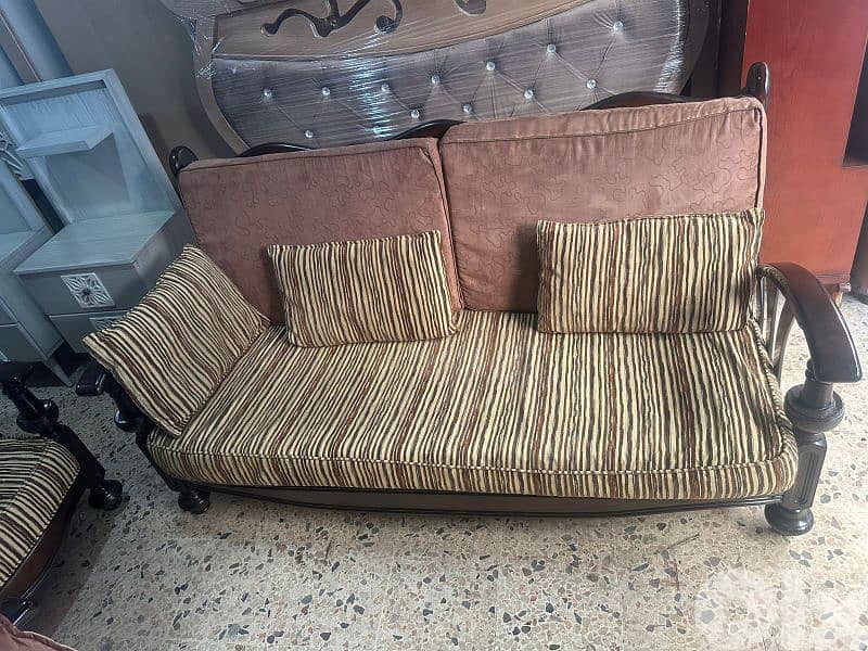 طقم كنبايات خشب زان مستعمل بحالة ممتازة مؤلف من وحده كبيرة وسط واتنين صغار كتير مرتب وحلو مطلوب فيه 400$ وبتزبط السعر للتواصل