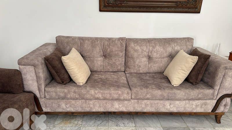 طقم كنبايات شغل توصاية كنار خشب زان قماش نبك تركي مؤلف من اتنين كبار وسط واتنين صغار كتير مرتب وحلو السعر الأساسي 2200$ مطلوب فيه 900$ وبتزبط السعر للتواصل