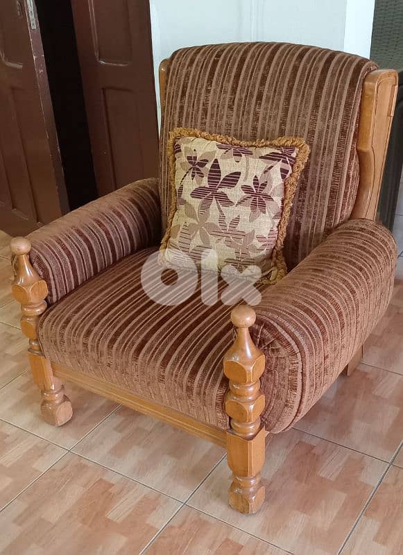 طقم كنبيات مميّز من خشب الزين الطبيعي (2 صغار + 1 وسط + 1 كبيرة + 1 طاولة)، شغل حرفي أصيل، بيجمع بين المتانة والأناقة. الخشب بحالة ممتاز، والتنجيد نظيف ومرتب. التصميم كلاسيكي وراقٍ، بيضفي طابع دافئ وأصيل لأي صالون أو بيت.