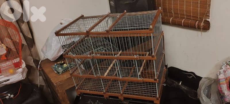 قفص عصافير شغل ايد خشب جديد مع قفص تاني الاحمر في عصفور كنار انتى للبيع كلون ب ٧٠$