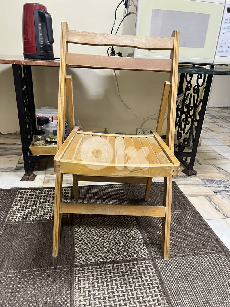 ،٤ كراسي خشب طبيعي بحالة جيدة تطوى بحاجة فقط للفارنيش الكرسي الواحد ٢٥ دولار