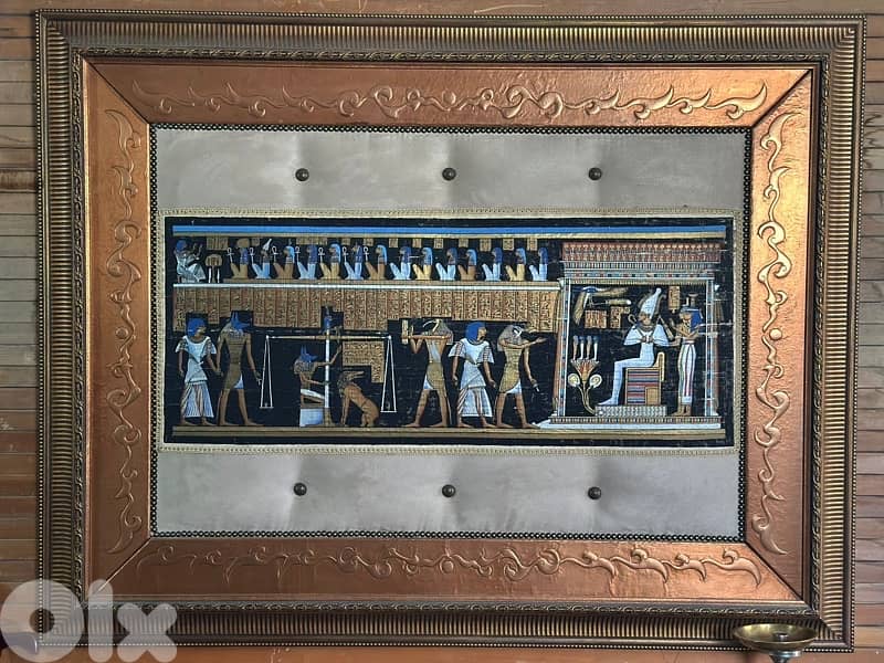 لوحة بردي بطابع فرعوني داخل برواز نحاس محفور