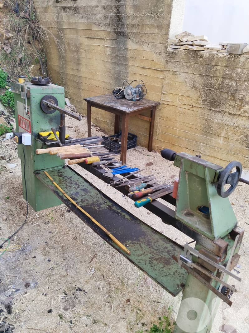 مخرطة خشب ايطالية 110سم مع كامل العدة والاكسسورات . هاتف 78726801 السعر 1500$