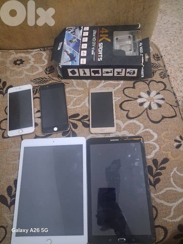 ٢ ايفون ٨بلس واحد شغال والتاني لا+ايباد ٩بدو شاشةبس شغال+تاب سامسونغ بدو ازازة خارجية+سامسونغ ج٥ شغال تمام + كامرة 4k شيلة وحدة بسعر مغري