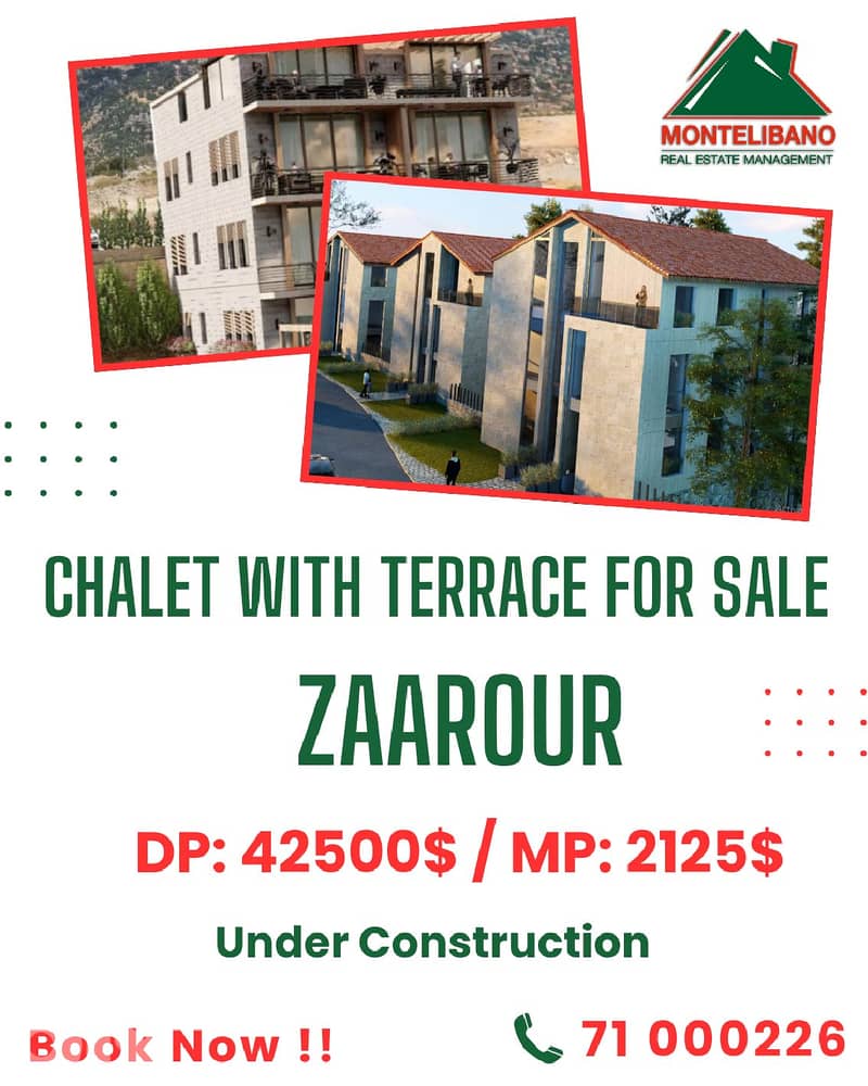 100 sqm Chalet For Sale in Zaarour with Terrace + Installment Plan