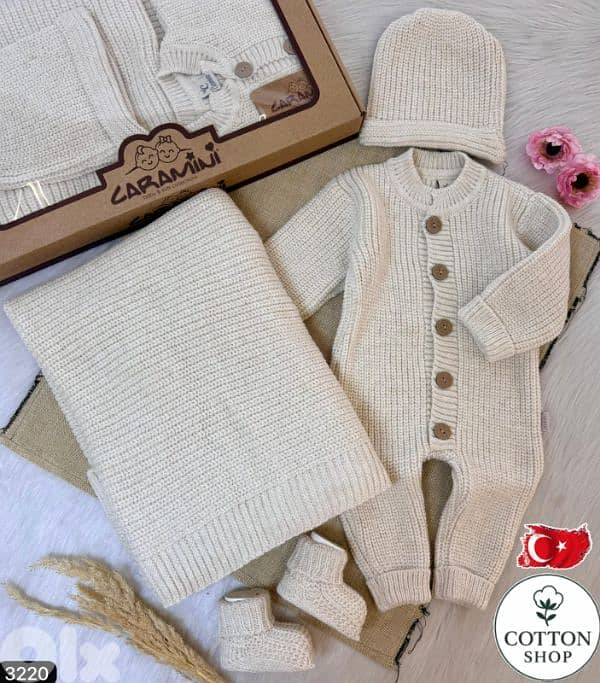 Set Includes: • Wool Swaddle Wrap, Blanket, Matching Wool Hat & Booties Features: • Hypoallergenic: Gentle and safe for sensitive baby skin. • Age: 0-3 Months. • Turkish Craftsmanship: High-quality made in Turkey
