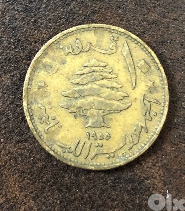 10p 1955 Lebanon coin