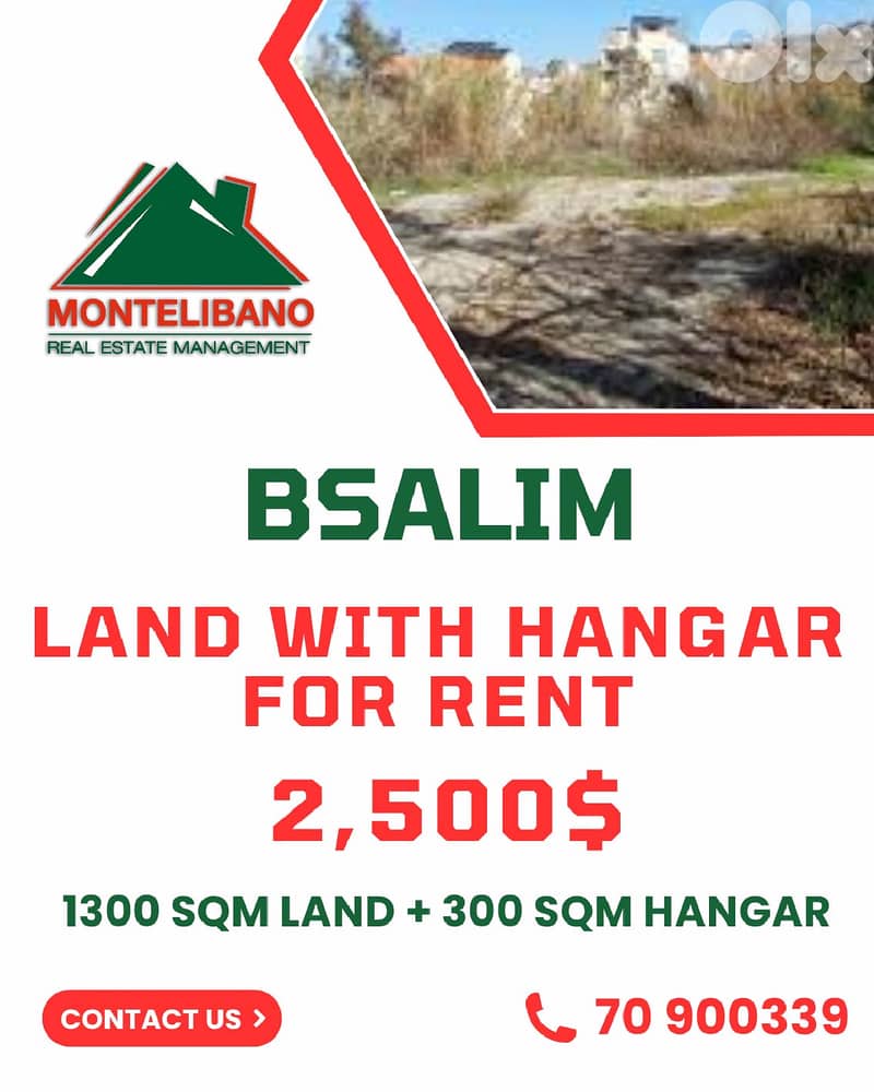 1300 sqm Land For Rent in Bsalim بصاليم with 300 sqm Hangar