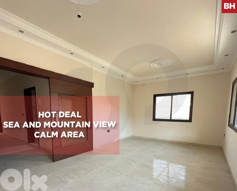 145 SQM apartment for sale located in a calm residential area in Ghazieh, offering open sea and mountain views.