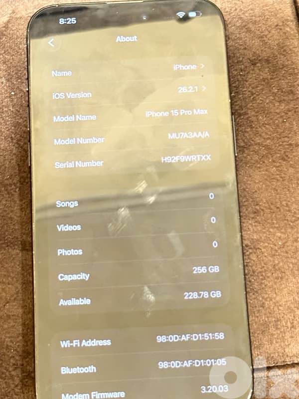 15 pro max 256 gb baterry health 83 % used ma mftouh klo original ma3 box aslye elo bado jemrok kelfet jemrok 177$ for sale