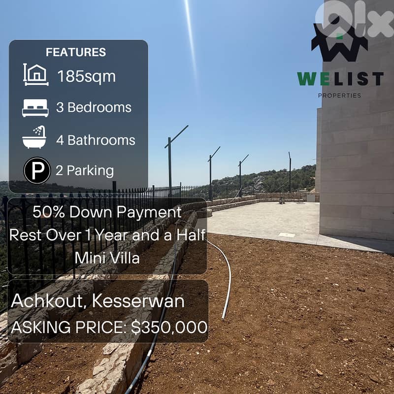 ١٨٥م فيلا + ٢٦٥م حديقة + تراس للبيع في منطقة عشقوت، كسروان