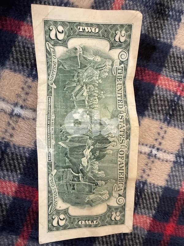 Original U. S. $2 Federal Reserve note from Series 2003. Features Thomas Jefferson on the front and the signing of the Declaration of Independence on the back. A nice collectible bill, priced affordably. Condition as shown in photos