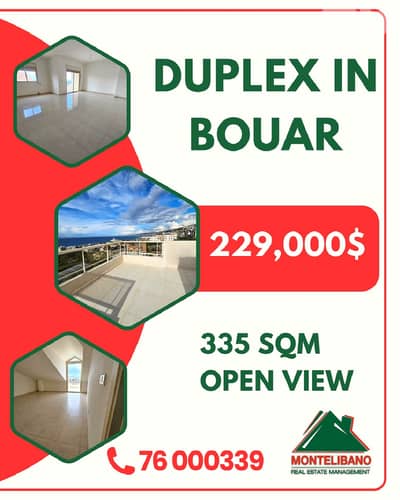 335 sqm Duplex For Sale in Bouar (بوار) with Open View 4 Bedrooms 5 Bathrooms Parking Underground Balconies Kitchen Salon Dining Room Living Room Elevator Good Condition Price: 229,000$ Cash Payment MONTELIBANO S. A. L. are Dedicated to Delivering Superior real estate services in Lebanon, while Ensuring optimum satisfaction of its clients. Our team of experts will be pleased to serve you Contact us to schedule a site visit, or reply with your contact details and our sales team will contact you very soon. Montelibano S. A. L. Jdeideh. Lebanon