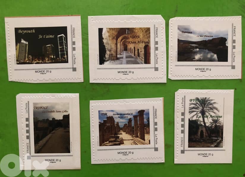 6 MNH Sperial Stamps Issued by France on Lebanon places topic. Hard to find. Issued by La Poste France, pour envelope Monde 20 grams.