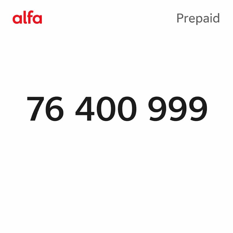 Own a Premium Mobile Number - 76 400 999 - Exclusive Alfa Prepaid Mobile Number خط تشريج الفا مميز