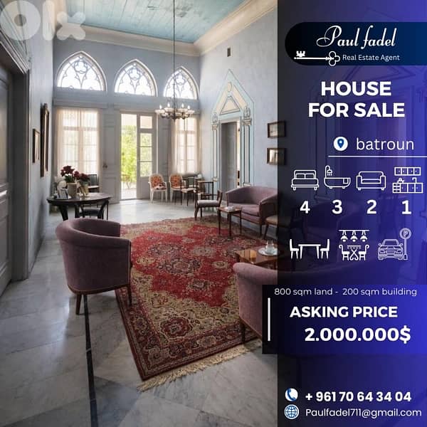 A timeless heritage home for sale in Batroun