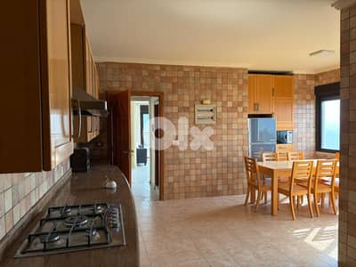 Spacious 300 sqm roof apartment located on the 5th floor, featuring three bedrooms, two bathrooms, salon and dining room, kitchen, a large terrace, and outdoor parking. The property enjoys beautiful sea and mountain views. The building offers security services. Situated in a prime location near the highway, the apartment is offered for rent at $18,000 per year.