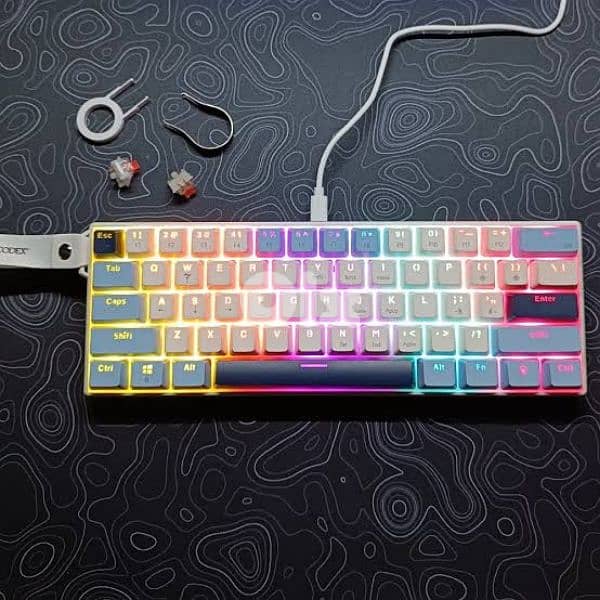 AJAZZ NK61 60% Hot- Swappable Mechanical Keyboard - Red Switches, RGB Backlight, Wired Connection, Compact 61-Key Design, with Keyboard Strap (Blue White)
