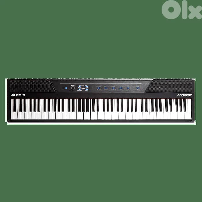 The Alesis Concert is an affordable, easy-to-play digital piano featuring 88 full-size, semi-weighted keys with adjustable touch response and 10 vibrant voices: Acoustic Piano, Bright Piano, Electric Piano, Harpsichord, Drawbar Organ, Church Organ, Synth, Strings, Bass, and Clavi. You can customize the voices by combining any two at once in Layer Mode for a full, rich tone, or you can assign voices to just the left or right hands in Split Mode. Add some tasty reverb and chorus to further enhance your sound. With built-in, 20-watt speakers and 128-note polyphony, the Alesis Concert delivers lush, realistic sound and a satisfying playing experience.