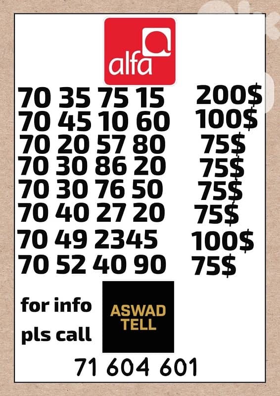 alfa new line for sale 100$ for more info pls call 71604601