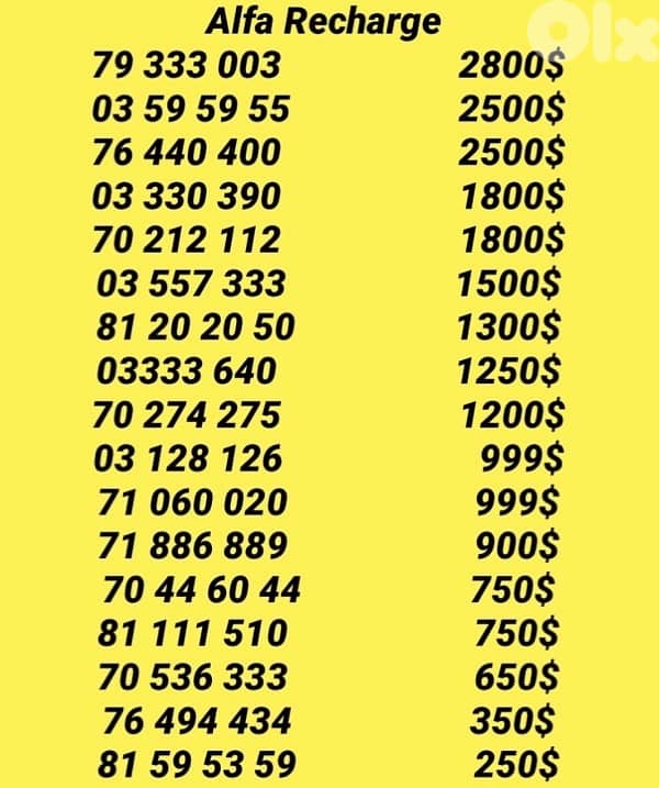 أرقام الهواتف المحمولة فى بيروت