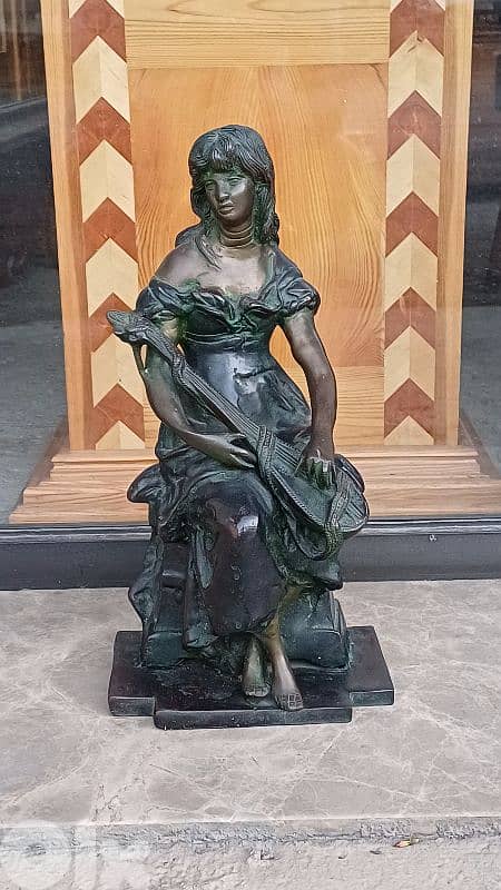 BRONZE FIGURINE, GIRL WITH LUTE 39 × 19 cm, 9 KG تمثال برونز، (فتاة مع العود)، قطعة مميزة محلات ANTIQUE ABOU KHATER زحلة حوش الامراء ٧٠٣٢١٣٦١ يوجد ديلفري لكافة المناطق
