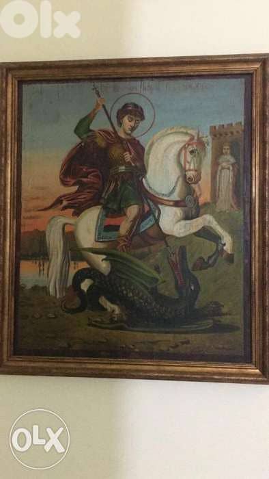 Up for sale this Antique early 19th century Greece icon of St. George’s slaying the dragon big icon hand painted with egg tempera in wooden panel rare and unique piece