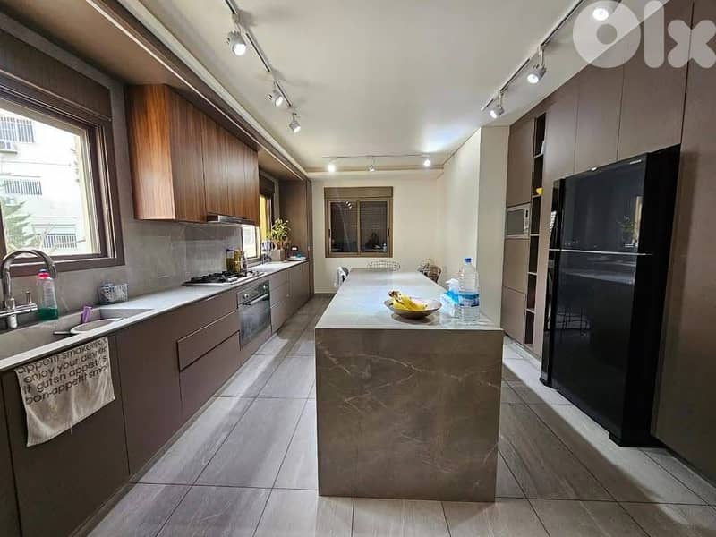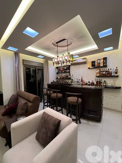 Stunning and fully decorated duplex apartment spanning the 5th and 6th floors, with a total area of 450 sqm – 150 sqm on the main level and a 300 sqm private rooftop. Located in a prime area of Aoukar, this property combines spacious living with luxury finishes.