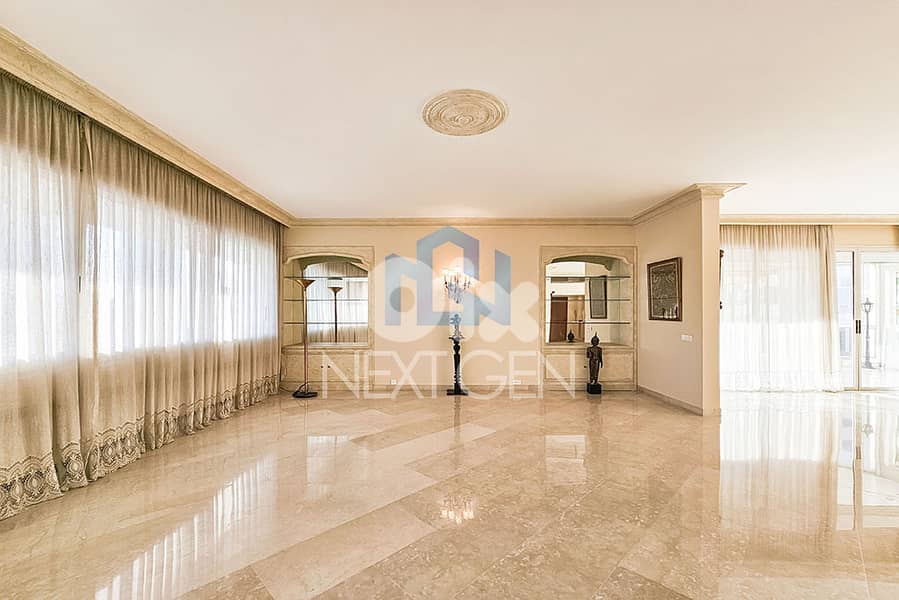 استمتع بالعيش الراقي في هذه الشقة الواسعة بمساحة 550 متر مربع، تقع في طابق مرتفع وتتميز بمساحات كبيرة وتشطيبات أنيقة. تضم 4 غرف نوم، 5 حمامات، و 3 مواقف سيارات، مما يوفر راحة وخصوصية عالية.