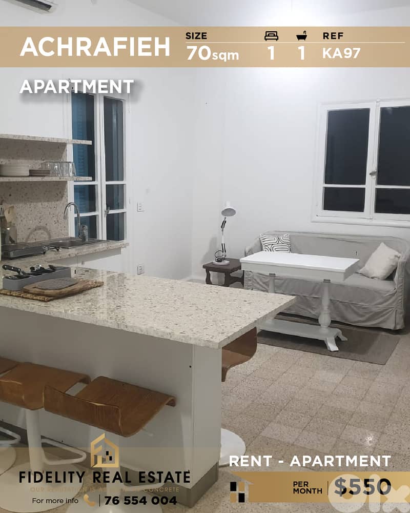شقة للإيجار بمساحة ٧٠ مترًا مربعًا في الأشرفية KA97