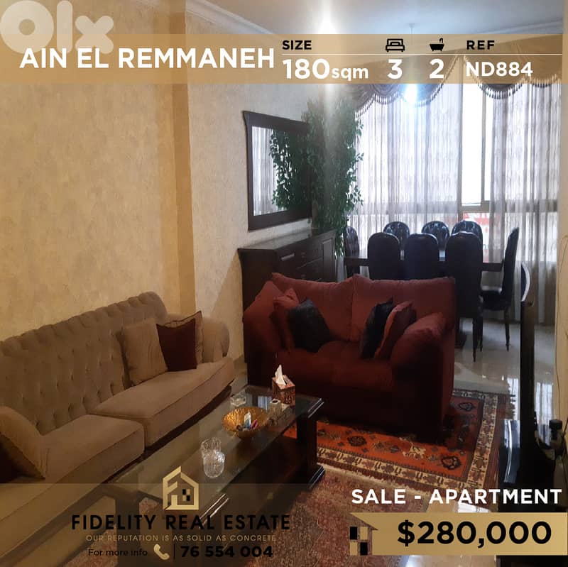 A 180 SQM apartment for sale in Ain el Remmaneh ND884