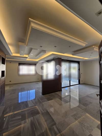 Decorated apartment in a very quiet area for sale in ain saadeh 220 sqm with 100 sqm terrace in a very well maintened bldg 1st floor with open sea and mountain view 4 bedrooms (1 master) 5 bathrooms Maid’s room with bathroom Salon Dining Kitchen balcony terrace 2 underground parking price 260 000$ cash + 2.5 % commission