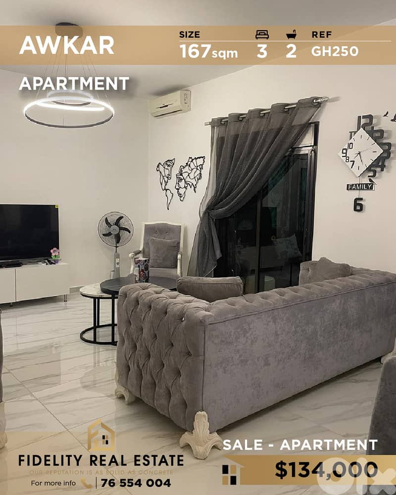 A 167 sqm apartment for sale in Awkar GH250