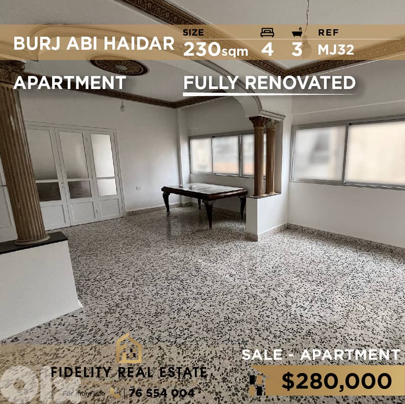 شقة بمساحة ٢٣٠ مترًا مربعًا للبيع في برج أبي حيدر MJ32