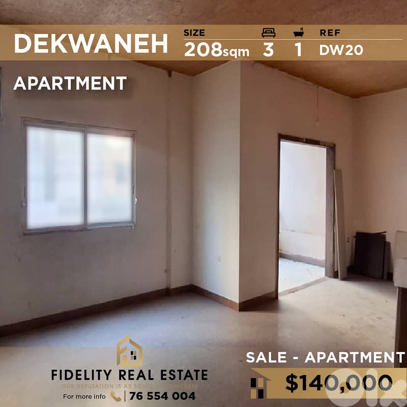 A 208 SQM Apartment for Sale in Dekwaneh DW20