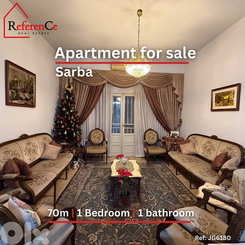 تقع هذه الشقة في صربا , ٧٠ متر مربع , في الطابق الاول ، كل طابق مؤلف من أربعة شقق، عمر البناء ٤٥ سنة ، غير مفروشة، للبيع