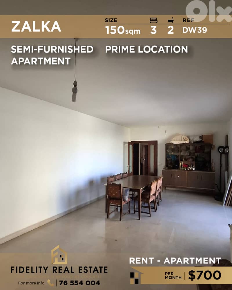 A 150 sqm semi furnished apartment for rent in Zalka - prime location. DW39