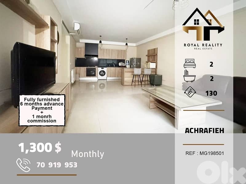 عِشْ في موقعٍ مميز حيث كل شيء على بُعد خطوات منك - شقة مفروشة بالكامل بمساحة ١٣٠ مترًا مربعًا في منطقة الأشرفية الراقية، توفر لك الراحة والرفاهية، وموقعًا مرغوبًا فيه دائمًا.