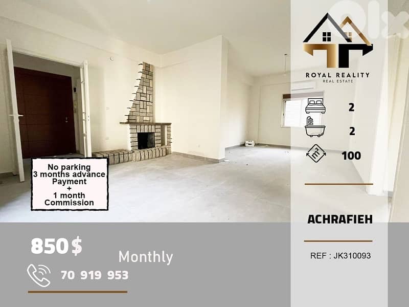 100 sq m apartment for rent, located in Ashrafieh - Mar Mitr, in a prime location.
