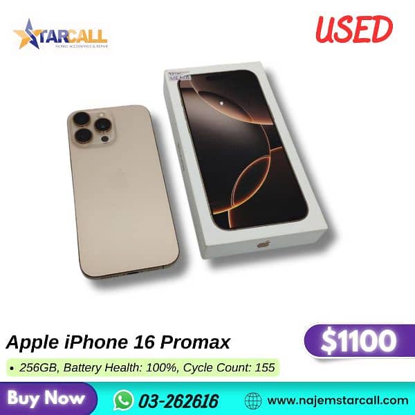 Apple iPhone 16 Promax 256GB, Battery Health: 100%, Cycle Count: 155