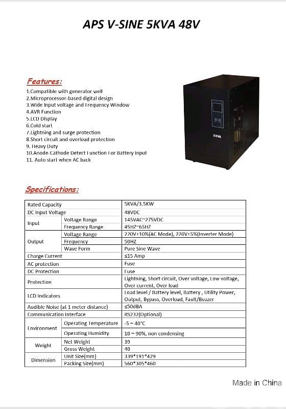 A brand new APS V-sine 5 kva system (48 volt) bought around 5 years ago and stored as a backup without a single use. Willing to sell for half its price as detailed on the attached invoice