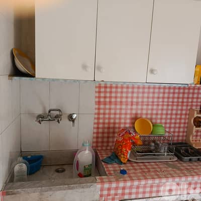 مطبخ مجهز بموقد وثلاجة