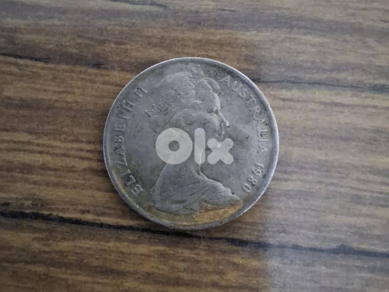 This is an Australian 20 cent coin from 1980, featuring the second portrait of Queen Elizabeth II on the obverse side.