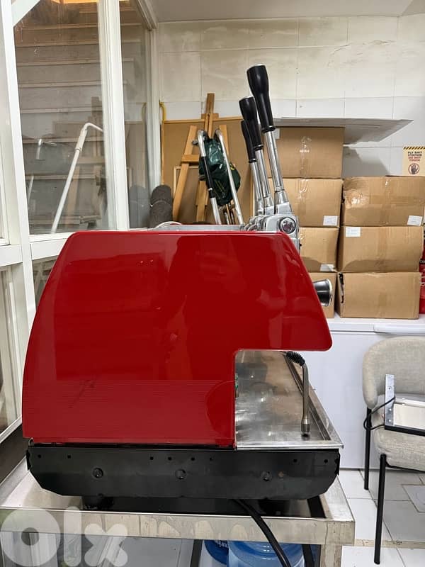 Authentic La Pavoni 3-group lever espresso machine, classic Italian design.